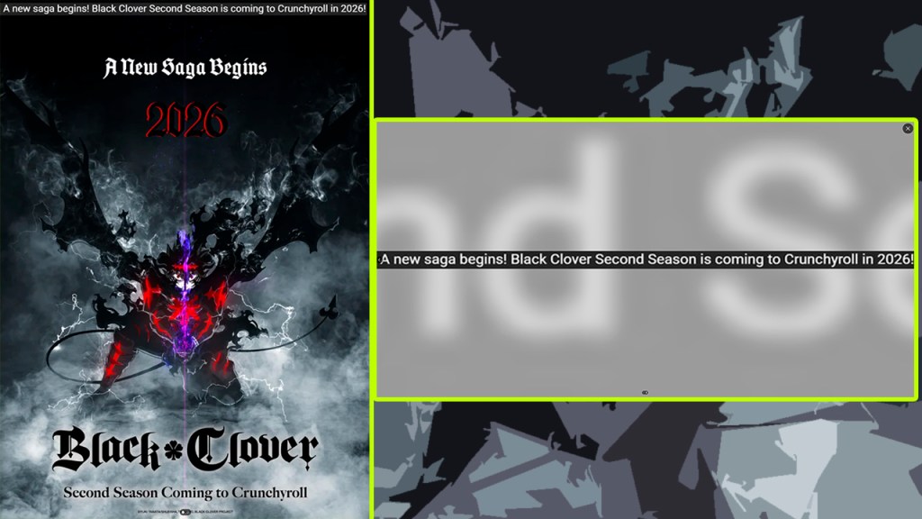 Se confirma que Black Clover regresará en 2026 (agregué el 2026 y la línea en la parte superior que son información de la descripción del tráiler de YouTube)